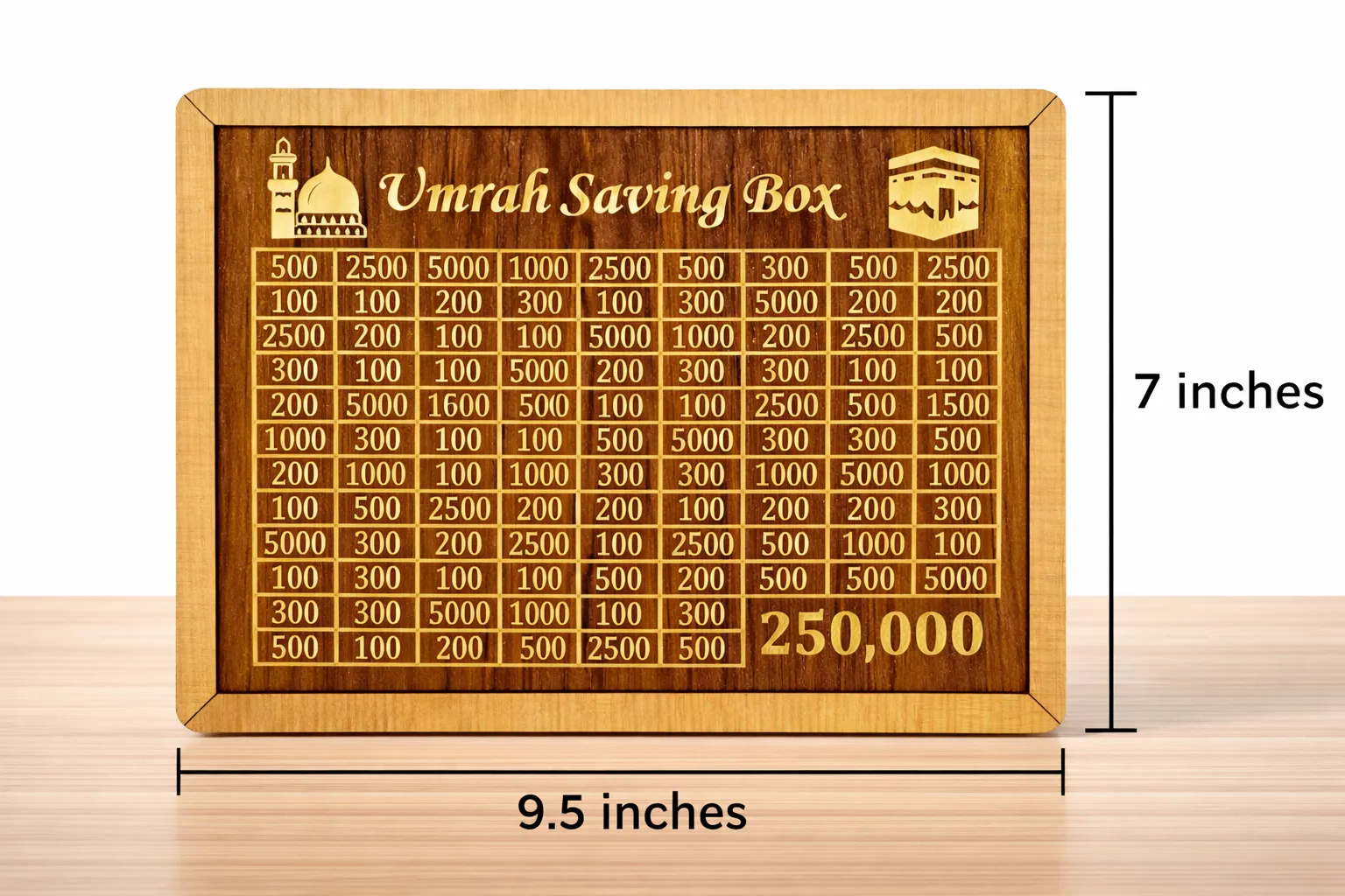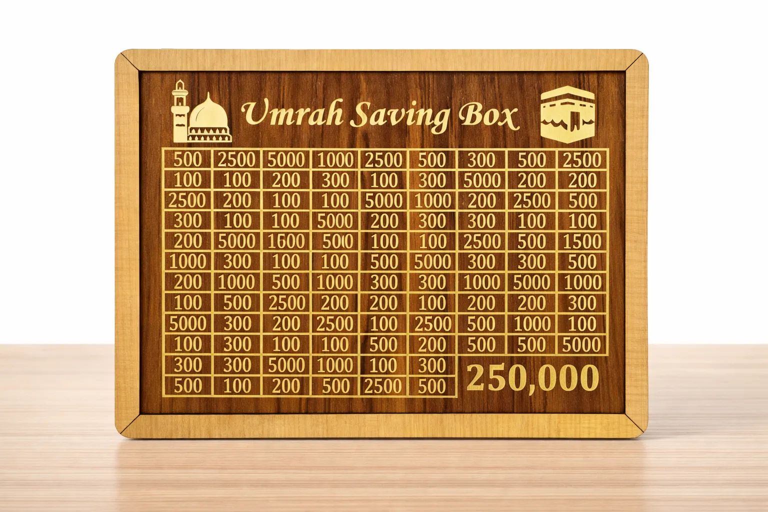 ✔ 250,000 Rupees Saving Target – Specially designed Umrah saving box to help you easily and systematically save up to PKR 250,000 for Umrah or Hajj.